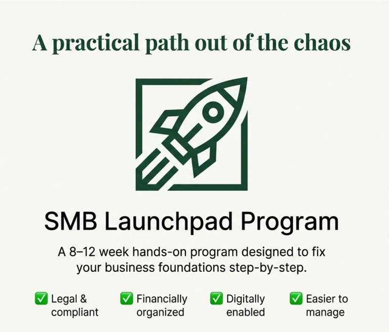 SMB Launchpad Program is designed to fix these problems — step by step — in a way that is simple, practical, and affordable.